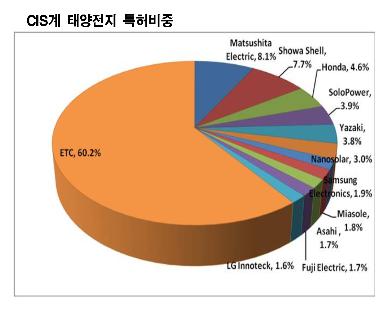 표, 그래프: < CIS계 태양전지 특허비중 > <화학저널 2011/04/01> |