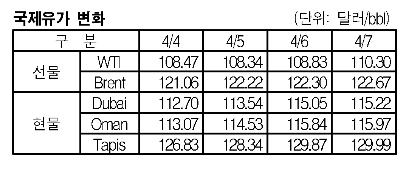 4월7일 1.47달러 올라 110.30달러 형성 … 두바이유도 115달러 강세