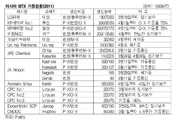 아시아 BTX 시장은 일본의 지진여파가 진행중인 가운데 국내 아로마틱 시장이 혼선을 빚고 있다.