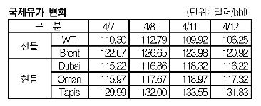 4월12일 2.10달러 내려 116.22달러 형성 … WTIㆍBrent유도 크게 하락