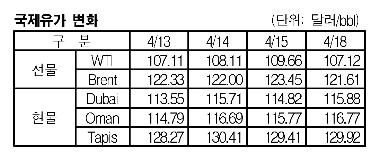 4월18일 1.06달러 올라 115.88달러 형성 … Brent유는 121.61달러