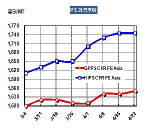 표, 그래프: < PS 가격추이 > <화학저널 2011/04/27> |