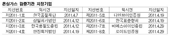 표, 그래프: < 온실가스 검증기관 지정기업 > <화학저널 2011/05/03> |