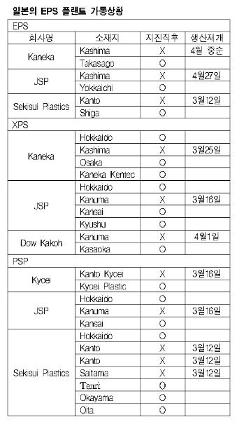 KanekaㆍJSP는 XPSㆍPSP 생산 재개 … 전력제한으로 수급타이트 우려