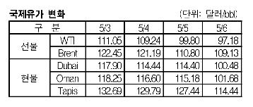 5월6일 13.92달러 하락 100.48달러 형성 … WTIㆍBrent도 대폭 떨어져