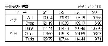5월9일 5.22달러 올라 105.70달러 형성 … WTIㆍBrent도 대폭 상승
