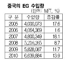 표, 그래프: < 중국의 EG 수입량 > <화학저널 2011/05/11> |