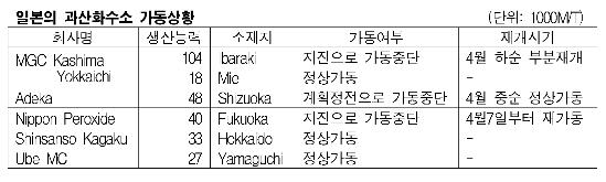 일본 과산화수소 시장은 대지진 발생 이후 공급부족이 지속됐으나 최근 숨통이 트이고 있다.