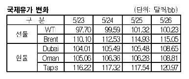 5월26일 3.17달러 올라 108.65달러 형성 … WTI는 100달러 턱걸이
