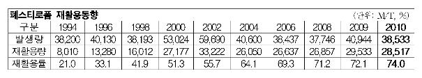 표, 그래프: < 폐스티로폼 재활용동향 > <화학저널 2011/06/01> |