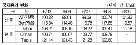 6월9일 1.77달러 올라 111.18달러 형성 … Brent유는 120달러 육박