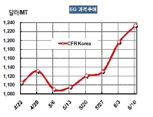 표, 그래프: < EG 가격추이 > <화학저널 2011/06/16> |