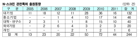 표, 그래프: < N-스크린 관련특허 출원동향 > <화학저널 2011/06/23> |