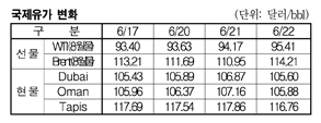 6월22일 105.60달러로 1.27달러 떨어져 … Brent는 3달러 급등