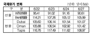 6월27일 101.07달러로 0.47달러 하락 … WTI는 90달러 붕괴 임박