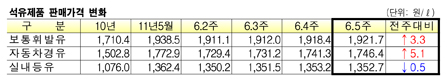 표, 그래프: < 석유제품 판매가격 변화 > <화학저널 2011/07/04> |