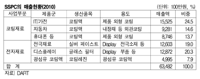 표, 그래프: < SSPC의 매출현황(2010) > <화학저널 2011/07/06> |
