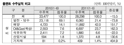 표, 그래프: < 플랜트 수주실적 비교 > <화학저널 2011/07/07> |
