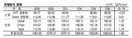 7월6일 106.52달러로 1.42달러 상승 … 중국 기준금리 인상도 별로