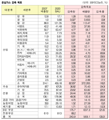 정부, 471개 대상기업 감축목표 할당 … 2011년 이행계획서 제출해야