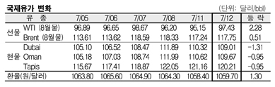 7월12일 1.31달러 하락 109.01달러 형성 … WTI는 97.43달러로 급등