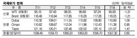 7월18일 1.09달러 올라 11.89달러 형성 … WTIㆍBrent는 소폭 하락