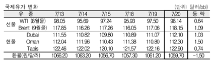 표, 그래프: < 국제유가 변화 > <화학저널 2011/07/21> |