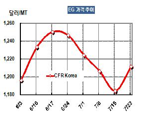 표, 그래프: < EG 가격추이 > <화학저널 2011/07/26> |