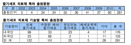 줄기세포 치료제 특허출원 2010년 281건 … 성체줄기세포 활발한 연구