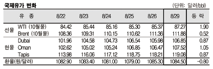 8월29일 0.87달러 올라 106.85달러 … WTIㆍBrent유 상승지속