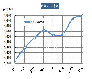 P-X 가격은 9월2일 FOB Korea 톤당 1682달러로 43달러 급등했다.