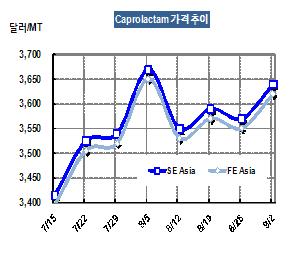 카프로락탐 가격이 CFR FE Asia 톤당 3620달러로 70달러 상승했다.