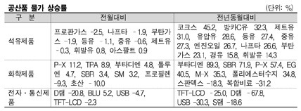 공산품은 원자재 가격 상승분이 차례로 반영되면서 전년동월대비 8.0%, 7월에 비해서는 0.1% 상승했다. 표, 그래프: < 공산품 물가 상승률 > <화학저널 2011/09/09> |