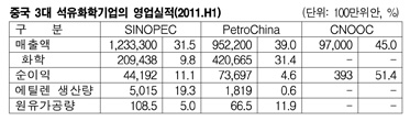 중국 대형 석유ㆍ화학기업의 2011년 상반기 영업실적이 모두 호조세를 나타냈다.