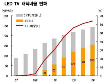 표, 그래프: < LED TV 채택비율 변화 > <화학저널 2011/09/23> |