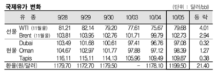 10월5일 0.32달러 올라 97.08달러 … WTIㆍBrent도 동반 상승