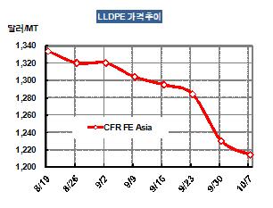 LLDPE 가격은 10월5일 CFR FE Asia 톤당 1214달러로 16달러 하락했다.