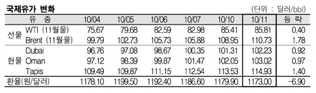 10월11일 0.92달러 올라 102.23달러 … Brent도 110달러 돌파