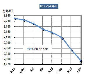 ABS 가격은 10월5일 CFR FE Asia 톤당 1990달러로 60달러 폭락했다.