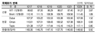 10월24일 1.52달러 올라 107.08달러 … WTI도 폭등 90달러 상회