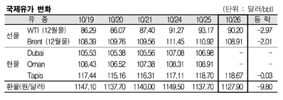 10월26일 경기침체 우려로 … WTI 2.97달러에 Brent 2.01달러 하락
