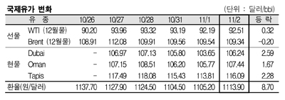 11월2일 2.59달러 올라 … WTIㆍBrent유는 유럽 재정위기로 혼란