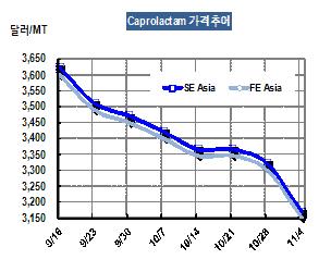 CPL(Caprolactam) 가격은 11월3일 CFR China 톤당 3150달러로 150달러 폭락했다.