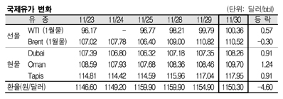 11월29일 0.91달러 올라 … WTI도 오랜만에 100달러 돌파