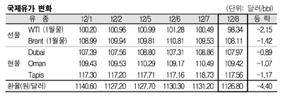 12월8일 0.89달러 떨어져 … WTI 2.15달러에 Brent 1.42달러 폭락