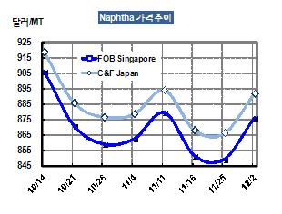 나프타 가격은 12월2일 CFR Japan 톤당 892달러로 26달러 상승했다.
