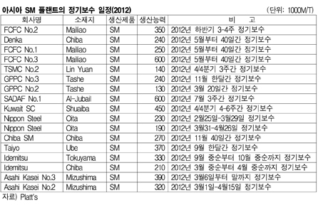 아시아 SM(Styrene Monomer) 플랜트의 정기보수 계획이 발표되면서 2012년 구도에 대한 밑그림이 그려지고 있다.
