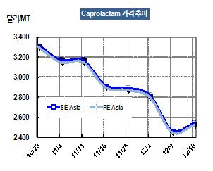 카프로락탐 가격이 12월15일 CFR FE Asia 톤당 2520달러로 70달러 상승했다.