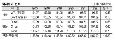 12월22일 0.56달러 올라 … WTI 0.86달러에 Brent 0.18달러 상승
