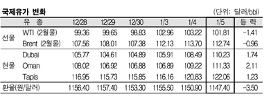 1월5일 1.74달러 올라 … WTI 1.41달러에 Brent 0.96달러 떨어져